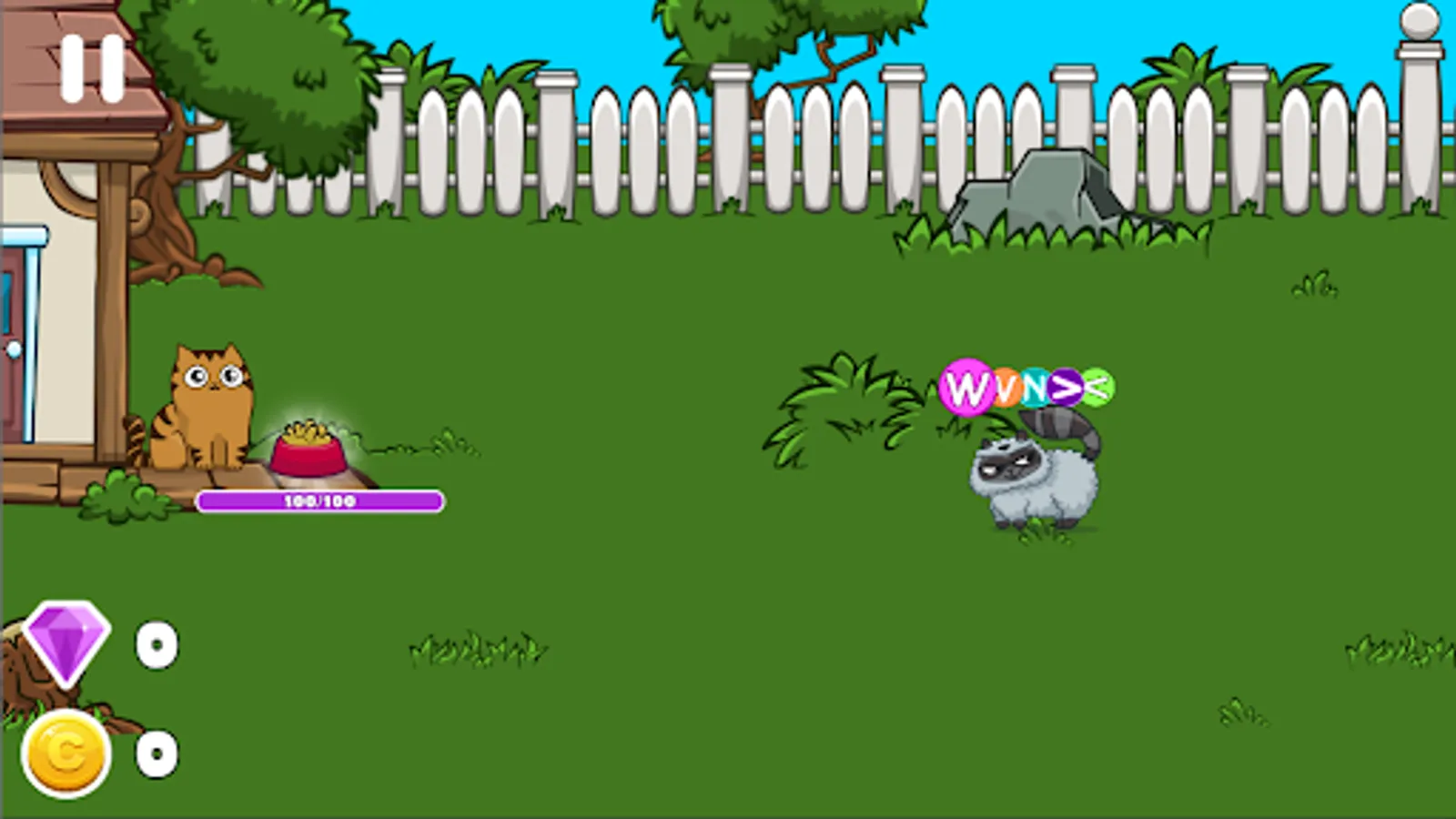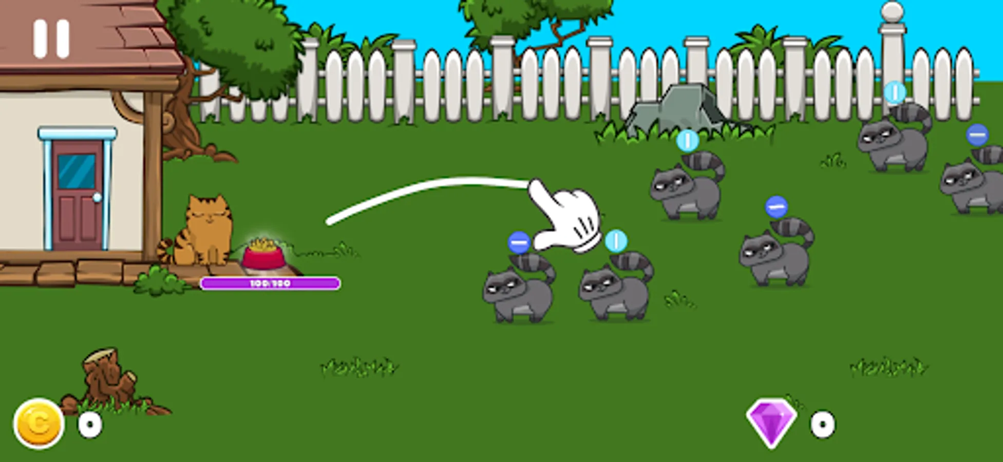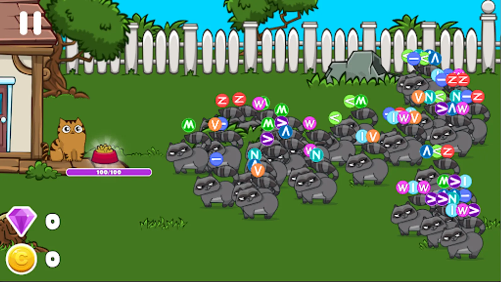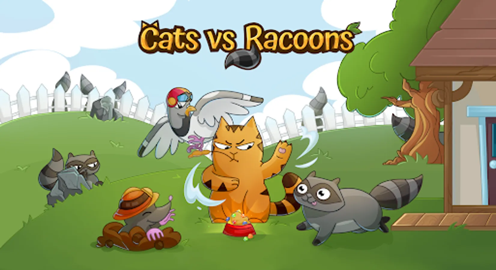 Cats 😺 vs Raccoons 🦝 is a funny and magic arcade game that allows you to develop many skills and improves brain function. Cat games are designed for having fun. You have to protect your little kitten from evil raccoons that want to take his food. The first levels may seem quite easy, but don't relax. Saveing the food becomes more difficult with each new level. Become a successful saver of a cute puppy.