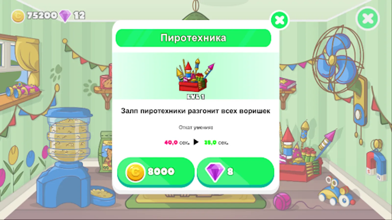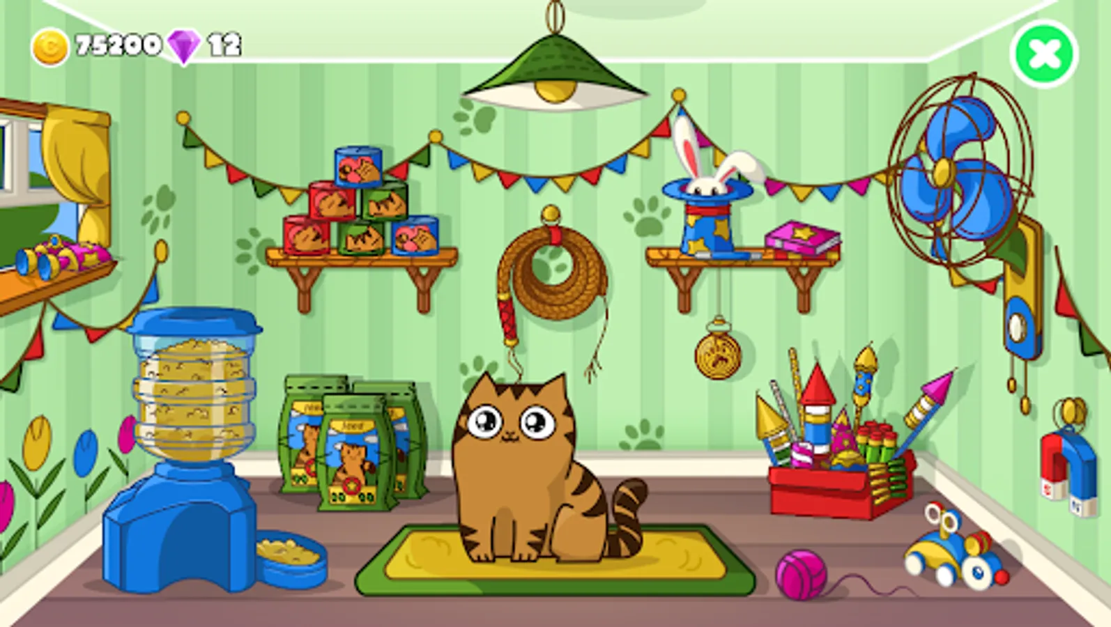 - the gold coins. With gold coins you can buy additional items in your cat's house. Each item has its own special qualities. With such items you can earn more coins and pass more difficult levels. Become a real tycoon in the mini app.