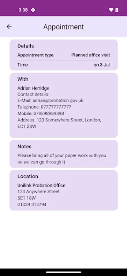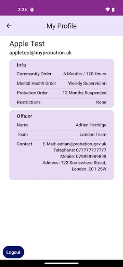 • Securely check your probation details and retrieve useful documents