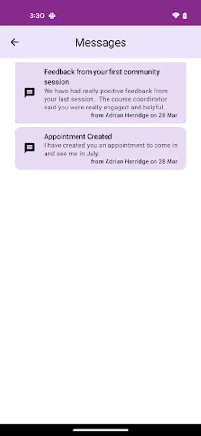 • Quickly see when your next appointment is and receive reminders so you never miss a session