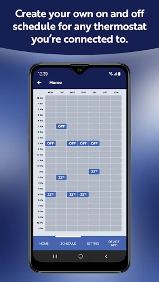 • Set up 6 programs per day for 7 days a week to run on schedule mode