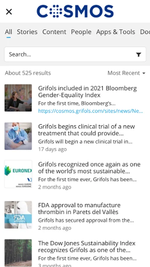 Download the Grifols Cosmos app to connect to the company's digital workplace. The platform provides Grifols employees with easy access to the latest company news and events, personal information such as payslips and benefits, and collaboration tools, such as Teams.