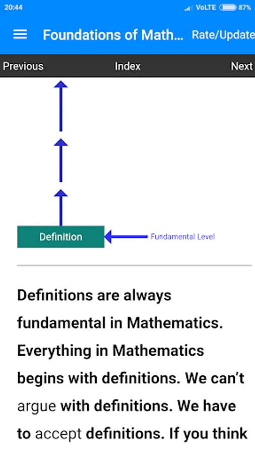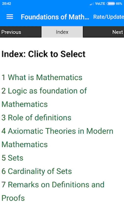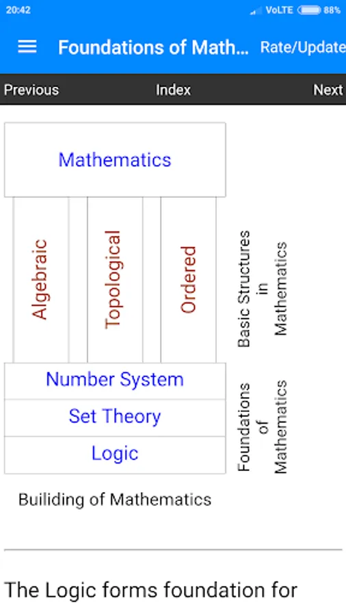 This app gives a concise introduction to Foundations of Modern Mathematics. The emphasis is on rigorous treatment of definitions, arguments, proofs etc. The topics covered are