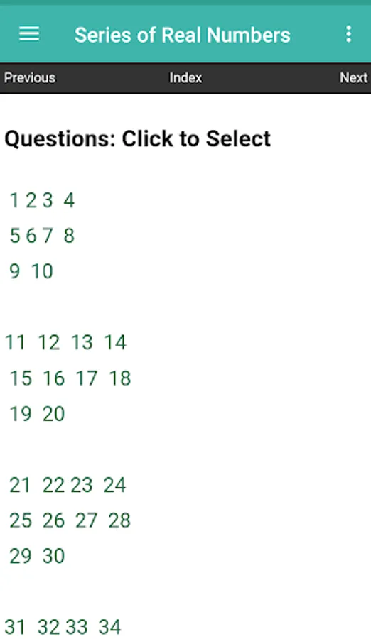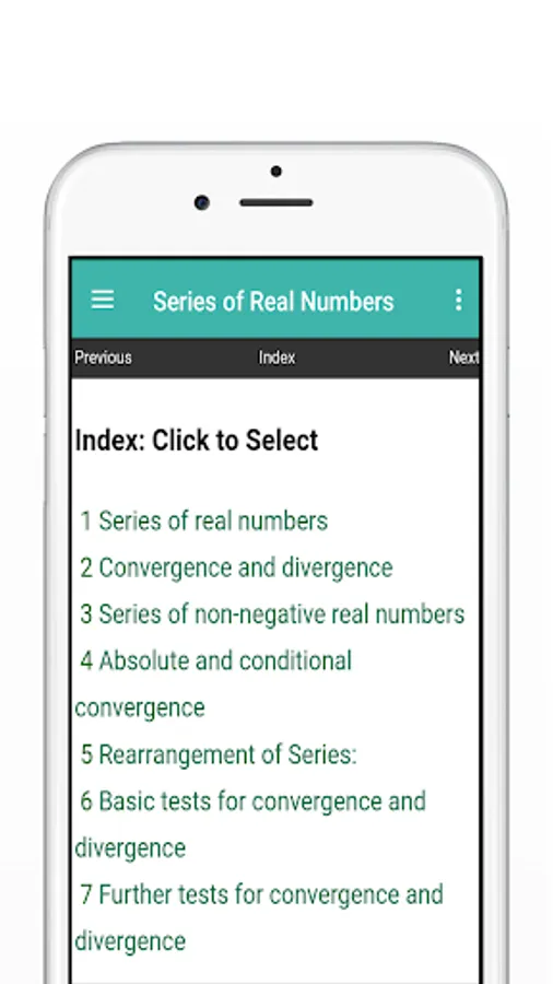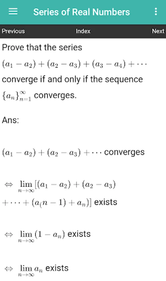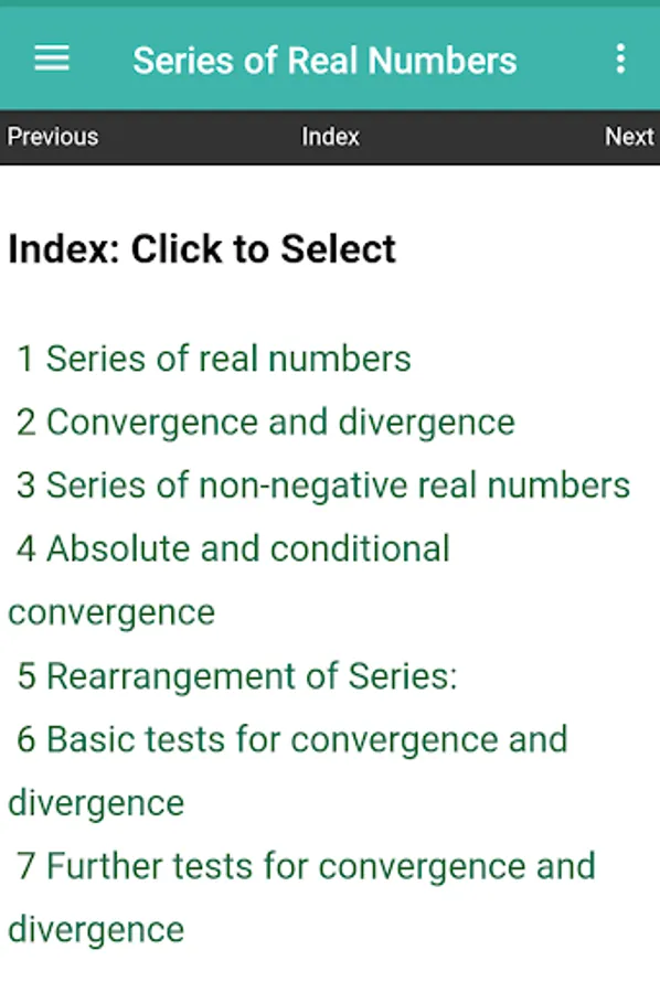 Understand Series of Real Numbers with Solved Examples. This app is created using methods developed as a part of the research work carried out at the Institute of Chemical Technology, Mumbai.