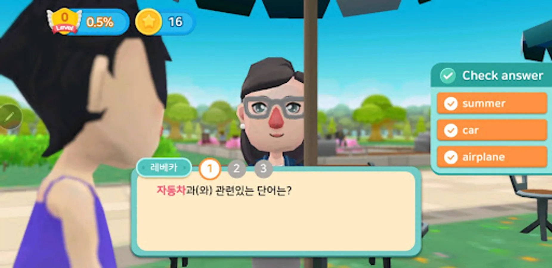 3. You can meet and talk to various characters on the map, review what you recently learned through quizzes, and earn additional points.