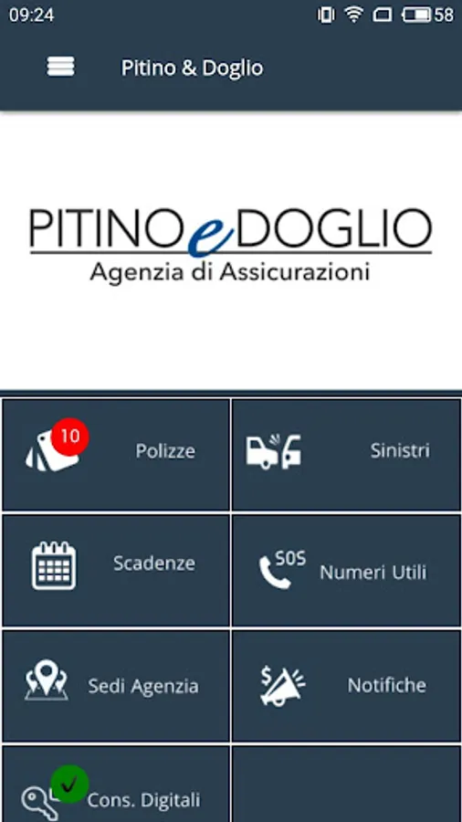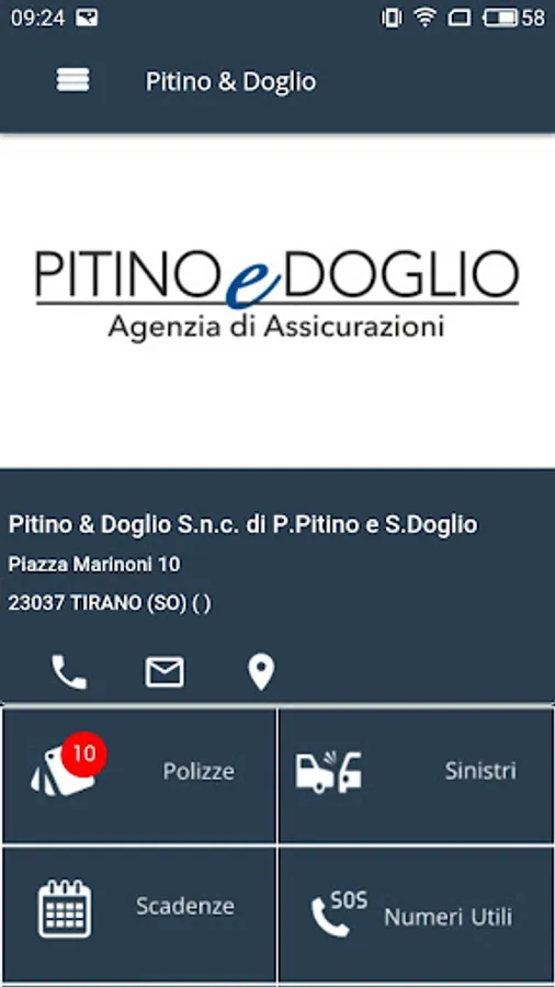 The Mobile App agency Pitino and Doglio snc insurance allows its customers to have vision of their policies, to control deadlines, receive alerts and to have the support numbers in case of vehicle breakdown.