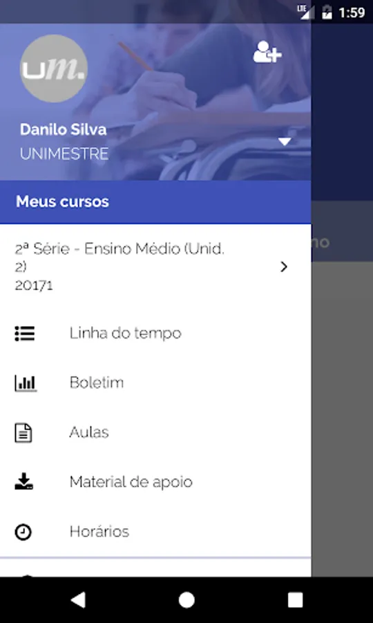 TIMELINE: From now on, the home screen, you will see all the news related to your profile. New classes, frequency, scheduling assessments, record notes, supporting materials ... all in one place. If you want to change what appears to you it is easy: in the timeline, click right on top, right, and configure the APP your way.
