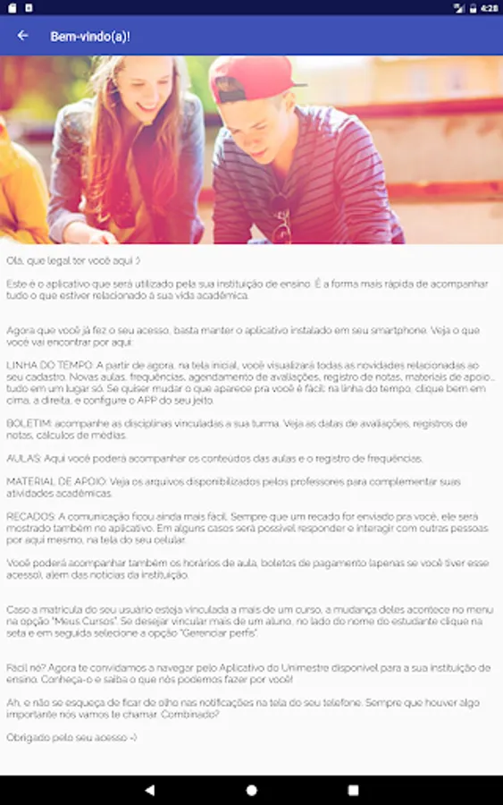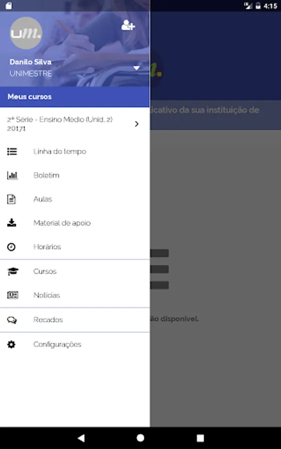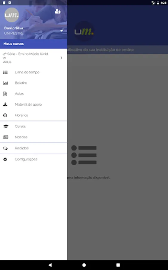 You can also follow class schedules, payment slips (only if you have such access), in addition to the institution's news.