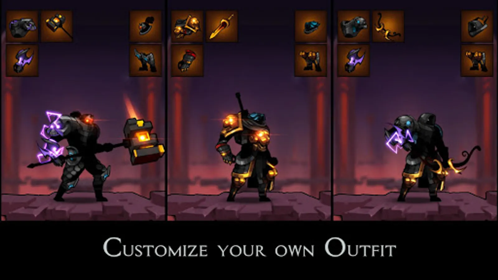 - Equip health potion, weapon, armor… whenever you need to hack and slash for your shadow stickman fighter ninja master.