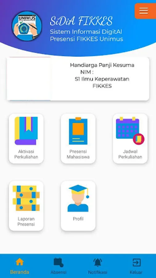 Sistem Informasi Digital Presensi (SiDia) FIKKES adalah Sistem Informasi berbasis Android yang dikembangkan oleh FIKKES Unimus dalam melakukan proses perekaman presensi untuk Dosen dan Mahasiswa di lingkungan FIKKES Unimus. Data Presensi secara otomatis tersinkronisasi dengan Sistem Informasi Akademik Unimus (SiAmus) yang dikembangkan oleh Unimus.