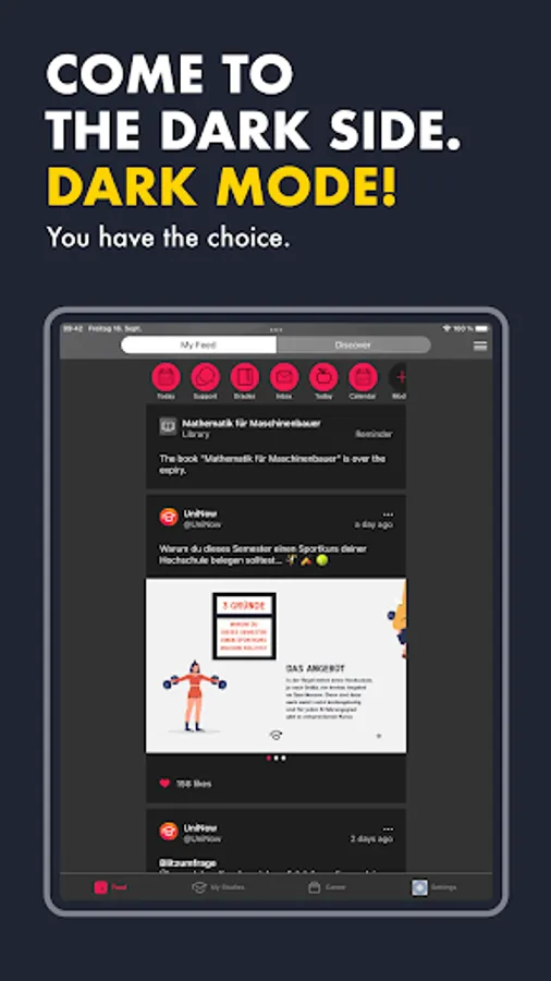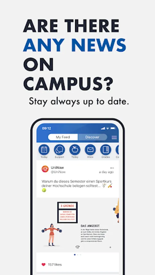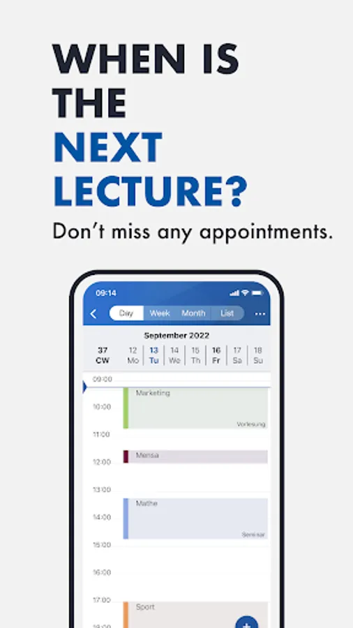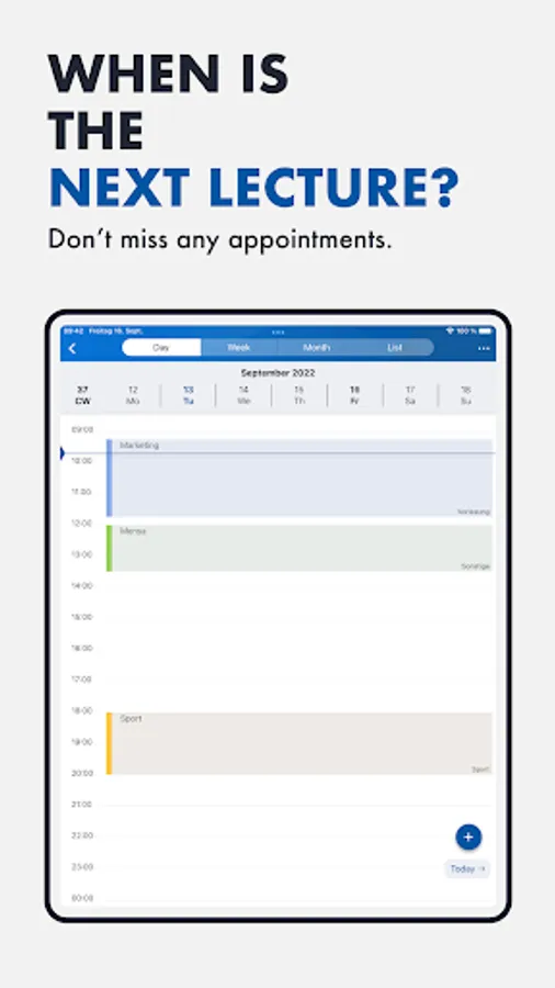 The app is your team partner on campus, which is impressive and integrates perfectly into your daily study routine. In no time at all, you have all the important information about your studies with you, wherever you are. You'll be surprised how easy it is.