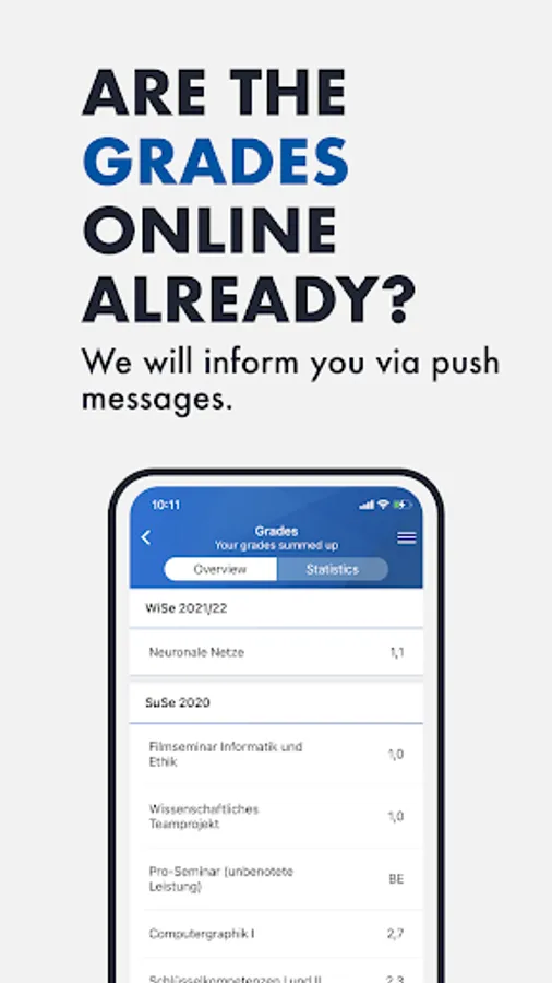 Grades: Calculate your grade point average and be the first to know your new grades via push notification!