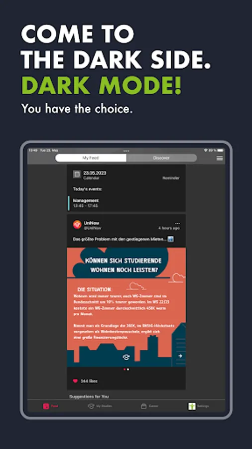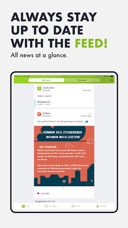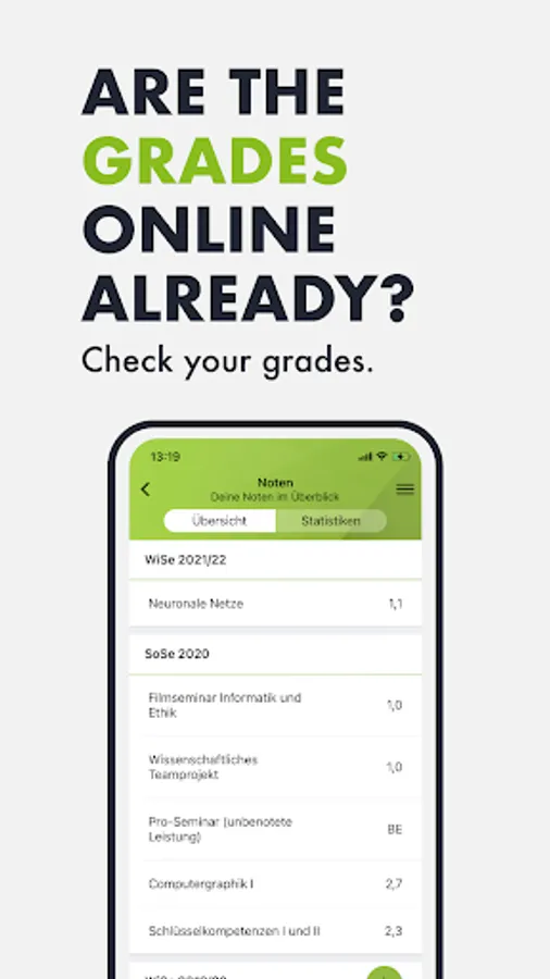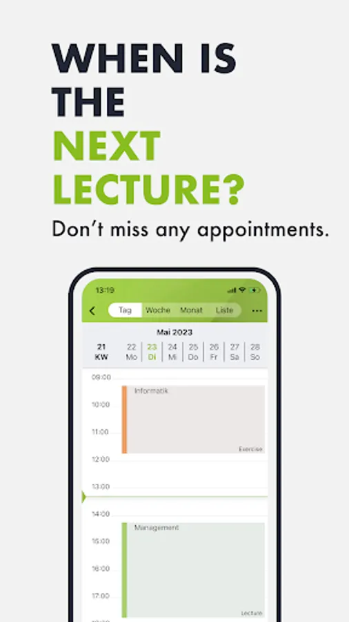 The app is your team partner on campus, which is impressive and integrates perfectly into your daily study routine. In no time at all, you have all the important information about your studies with you, wherever you are. You'll be surprised how easy it is.