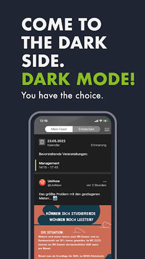 Everyday university life is exhausting enough, don't waste your time fighting through the confusing portals of the university. The app offers you everything you need to start every day well prepared, no matter if you have just started your studies or are already in your master's program.