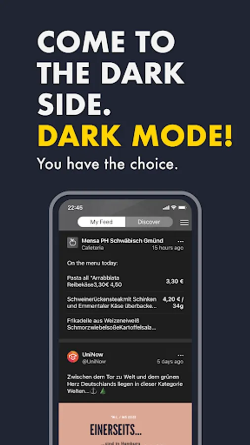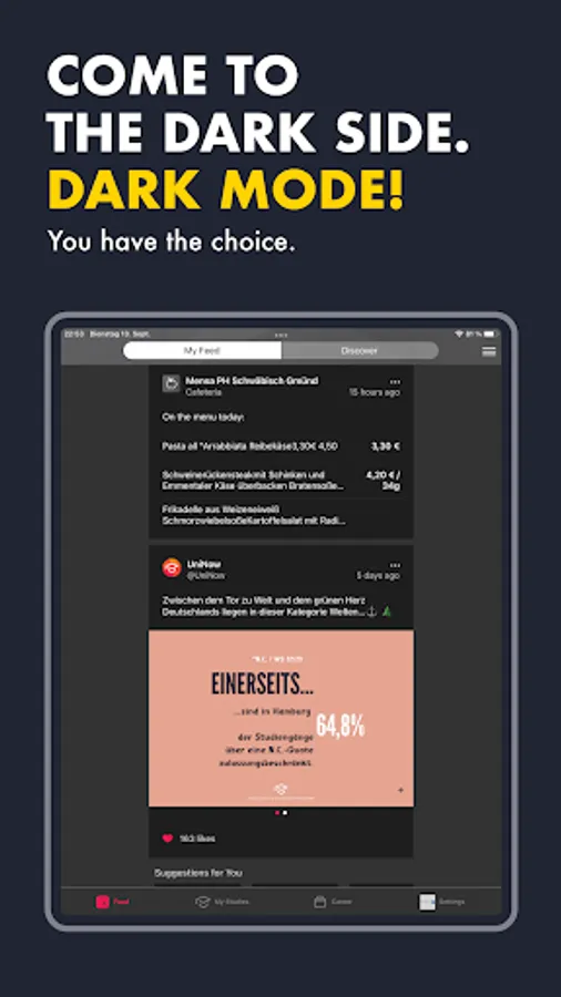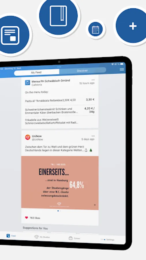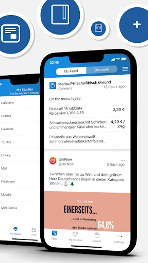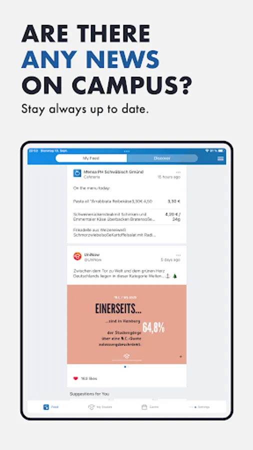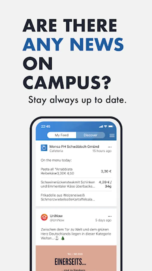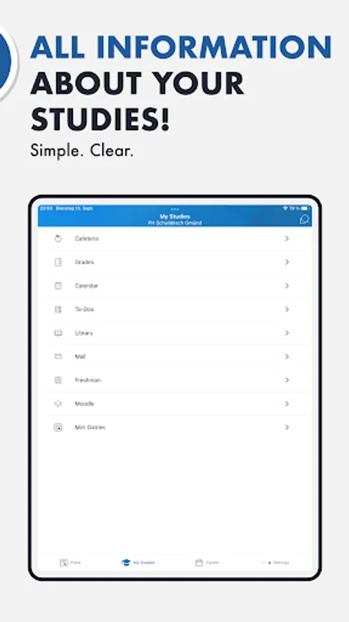 Everyday university life is exhausting enough, don't waste your time fighting through the confusing portals of the university. The app offers you everything you need to start every day well prepared, no matter if you have just started your studies or are already in your master's program.