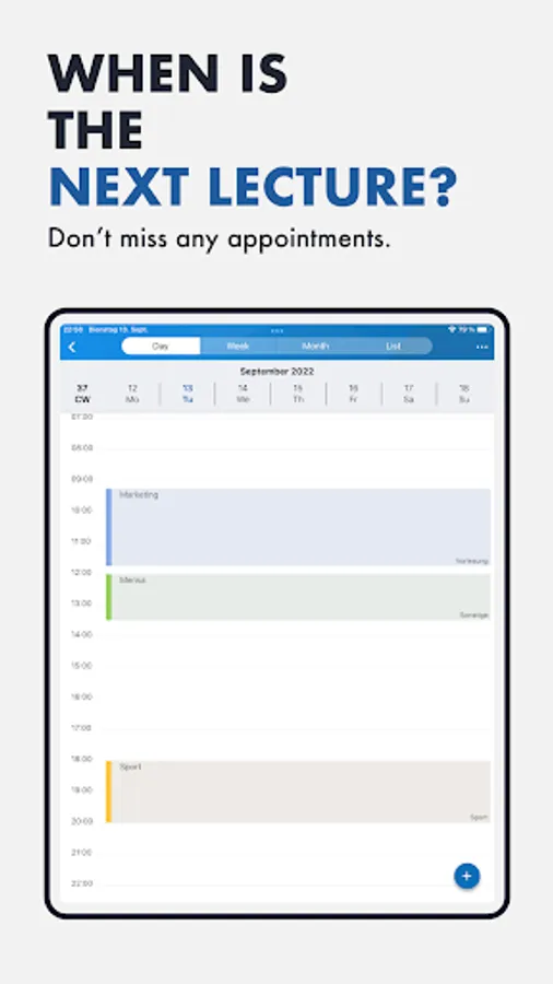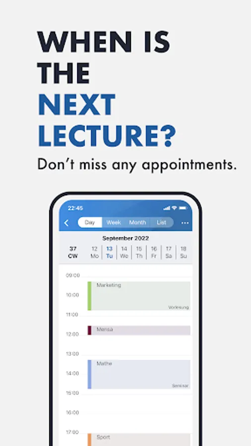 The app is your team partner on campus, which is impressive and integrates perfectly into your daily study routine. In no time at all, you have all the important information about your studies with you, wherever you are. You'll be surprised how easy it is.