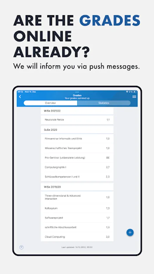 Grades: Calculate your grade point average and be the first to know your new grades via push notification!