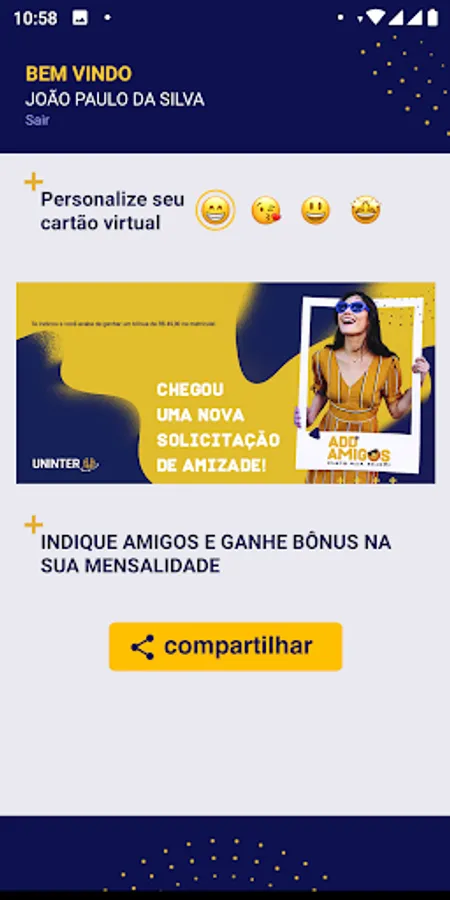 Download the Add Friends app for free, Uninter's new rewards program, where students and their friends get discounts.