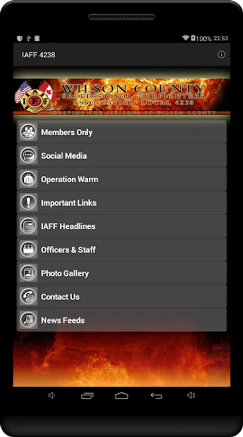 The official mobile app for the Wilson County Professional Fire Fighters Association IAFF 4238. Features include:
