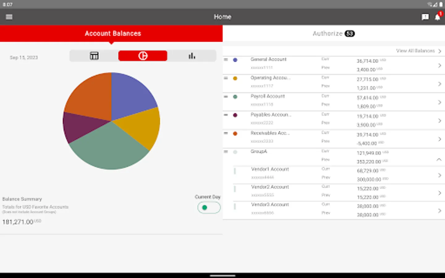 - Display current day account balances in a single currency (USD or foreign) using an indicative rate