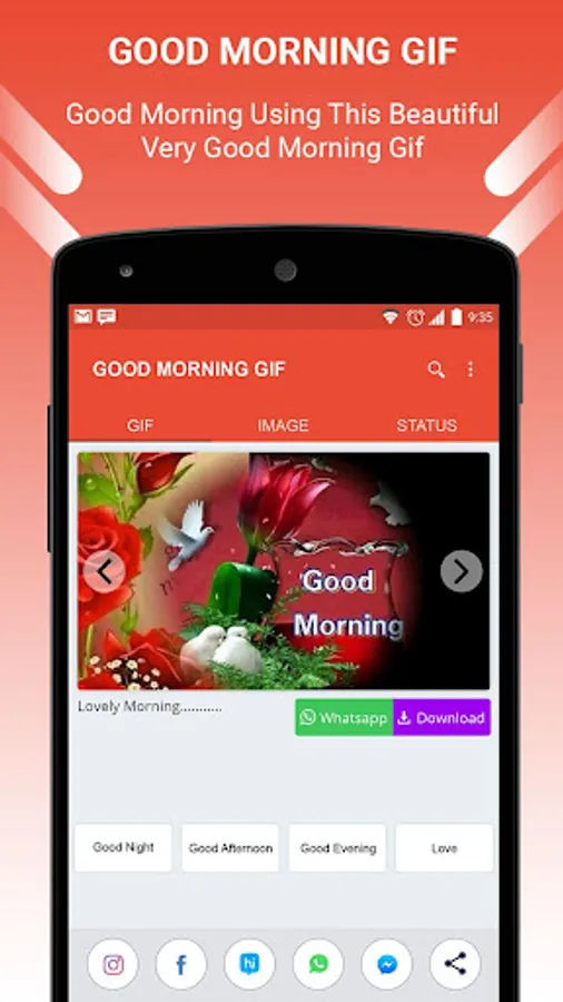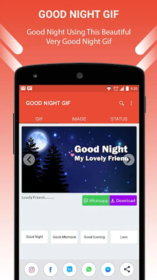 GIF Good Morning Night Collection App contains the best Morning Night (animated Gifs) that is easy to share with friends in social networks.