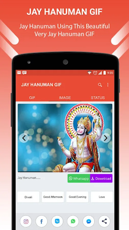 GIF Jay Hanuman Collection App contains the best Jay Hanuman (animated Gifs) that is easy to share with friends in social networks.