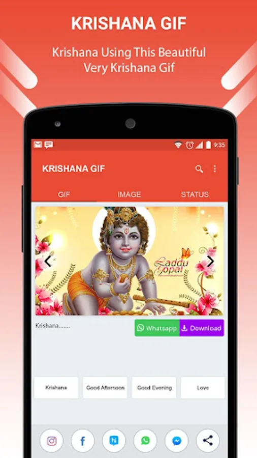 GIF Krishna Collection App contains the best Krishna (animated Gifs) that is easy to share with friends in social networks.