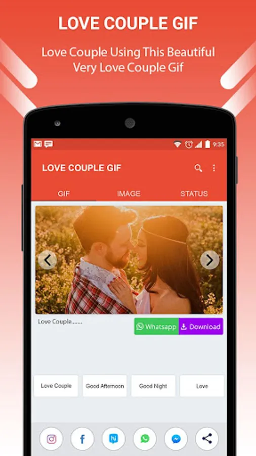 GIF Love Couple Collection App contains the best Love Couple (animated Gifs) that is easy to share with friends in social networks.