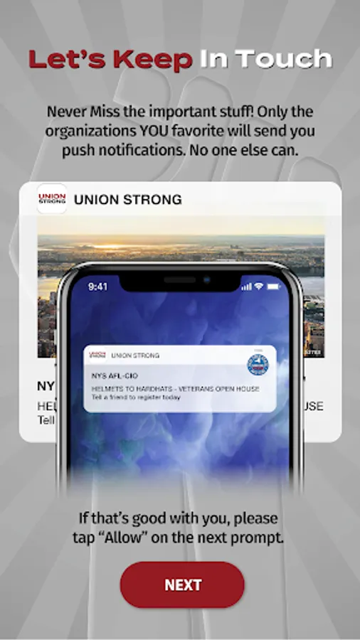 Introducing Union Strong. The first smartphone app for the labor movement. Now any union – every union – can have the power of a smartphone app and reach their members instantly. It is simple. It is affordable. It is powerful and connected – a union local can work cooperatively with partners and allies. For members, Union Strong is easiest way to stay up to date with your union; get the latest news, events, and critical information. Receive push notifications. Get details, add events to your calendar, and more If your union local is already using Union Strong, get the app and enter their AllAboard Code as you register. If your union isn’t using Union Strong yet, tell them they should be and point them to www.unionstrongapp.com.
