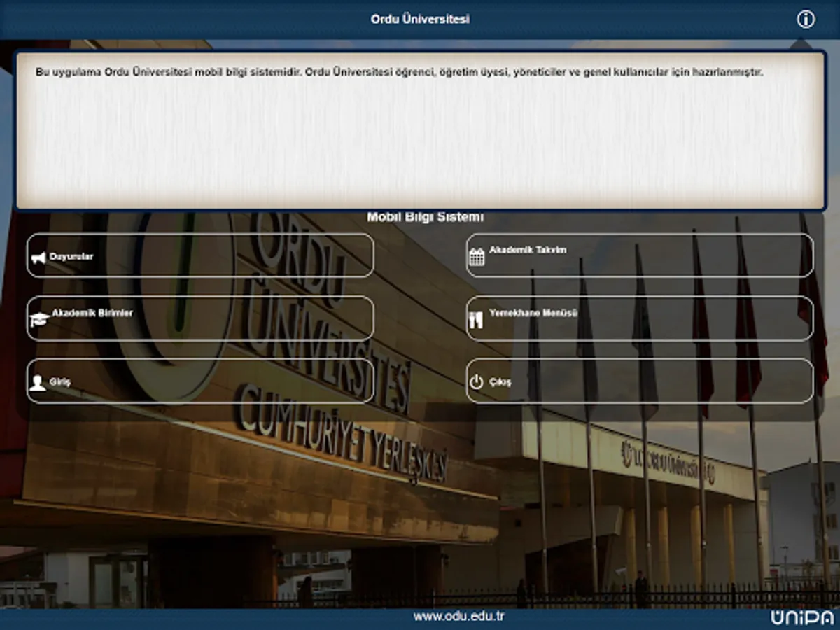 This application is a mobile information system Ordu University. Army University students, faculty, administrators, and is intended for general users.