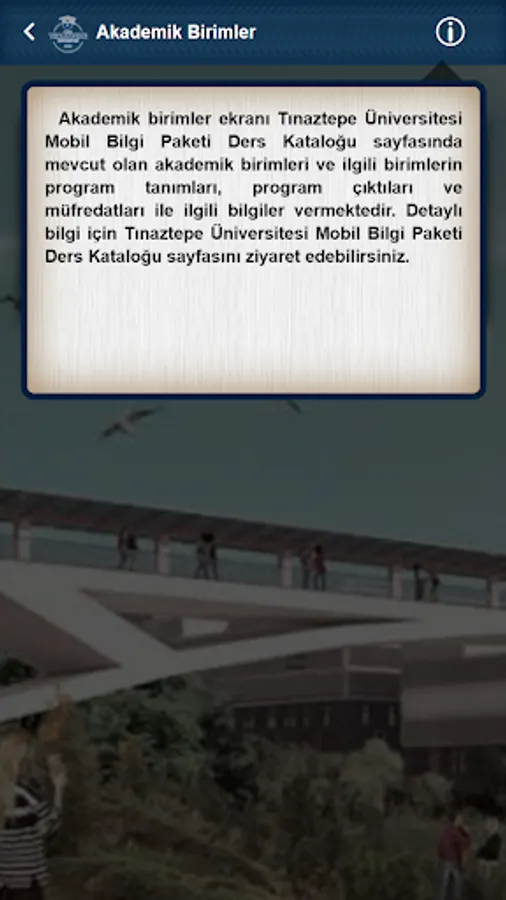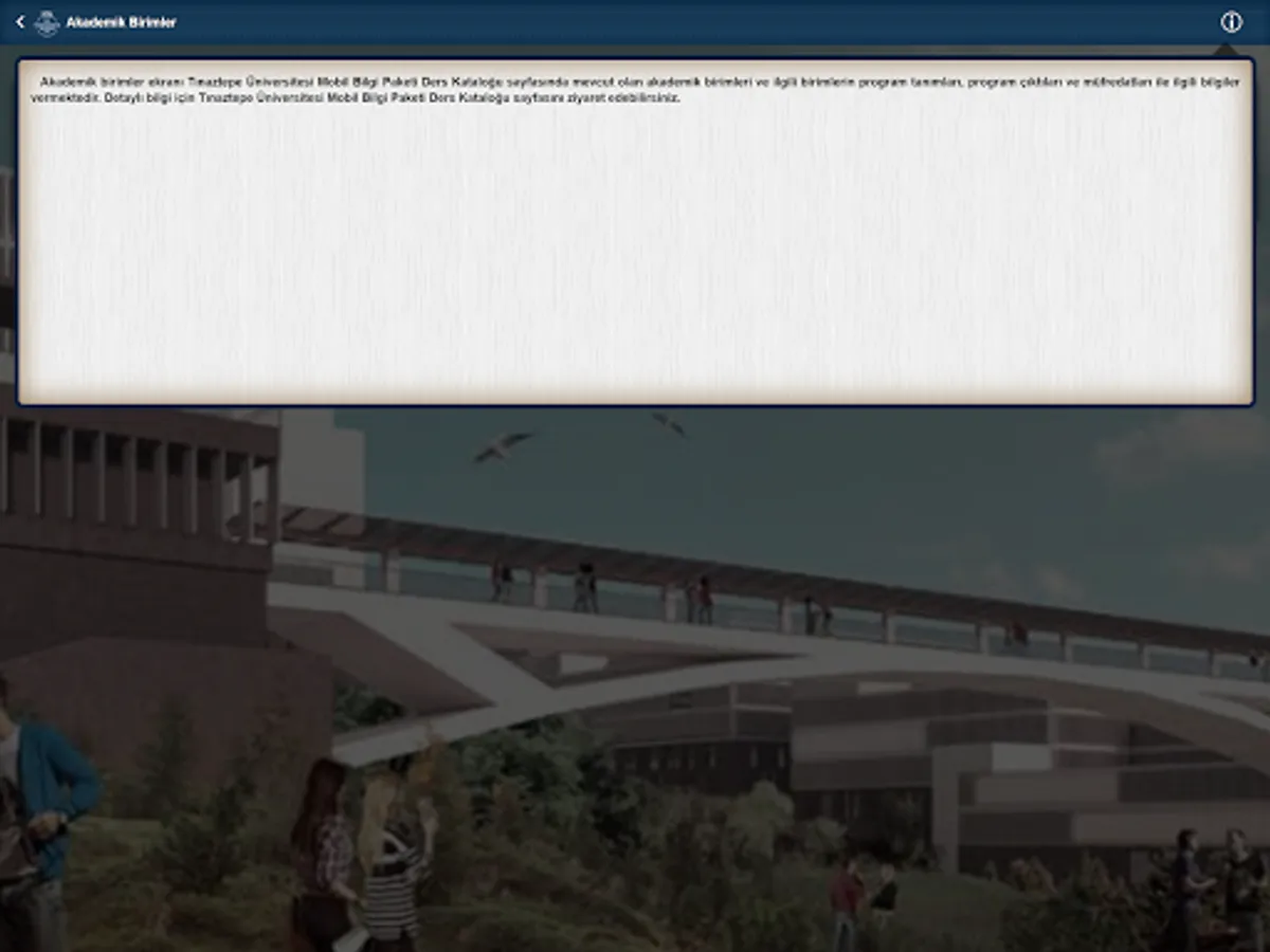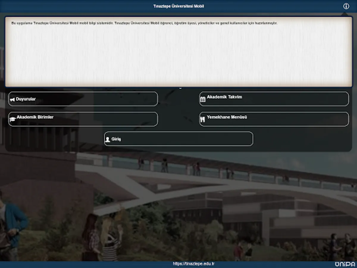 This application is Tınaztepe University mobile information system. It is prepared for Tınaztepe University students, faculty members, administrators and general users.
