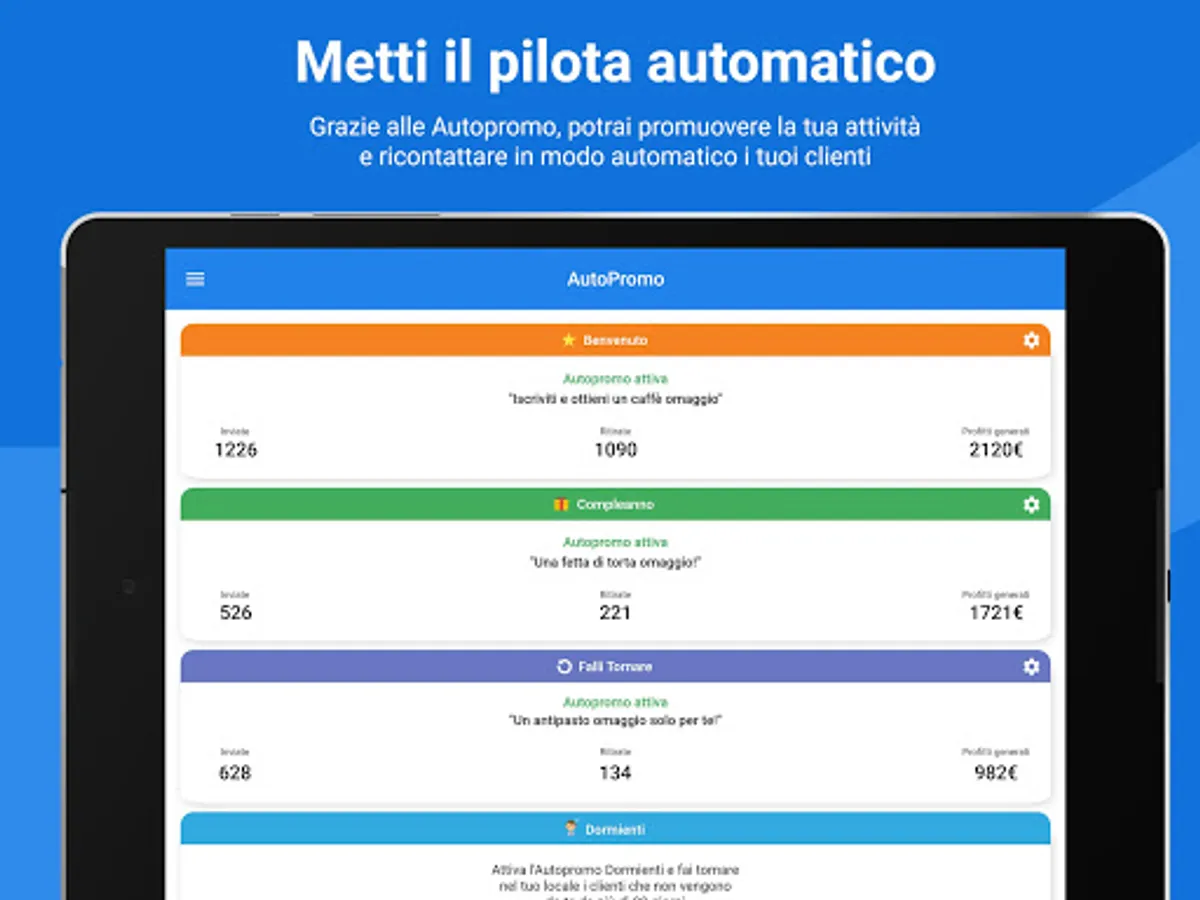 Call in inactive customers, reward VIPs or those about to turn a birthday without lifting a finger. Set up the Autopromo once and they will work for you even when you rest.