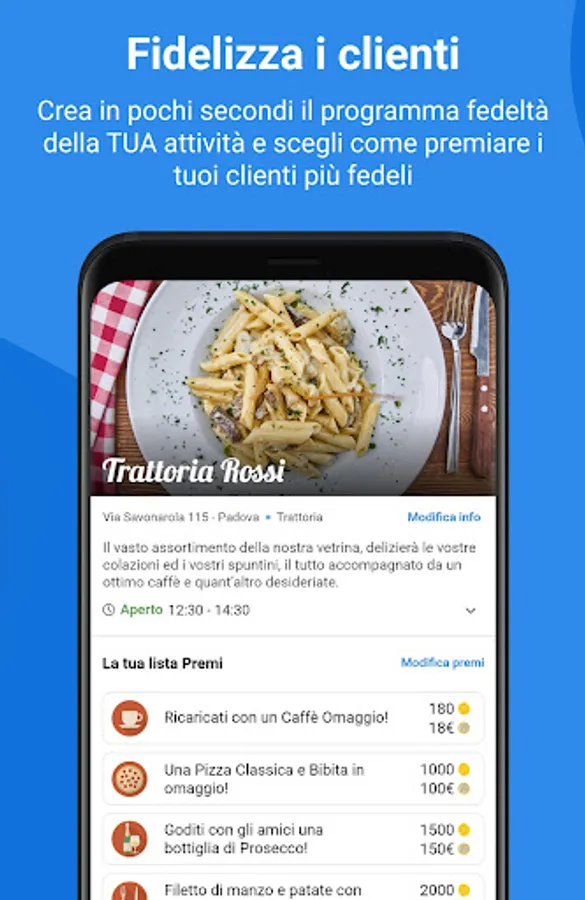 Make yourself known by more than 200,000 Unipiazza customers thanks to your web & mobile showcase that can be customized with photos, descriptions, timetables and social channels to keep it up to date!