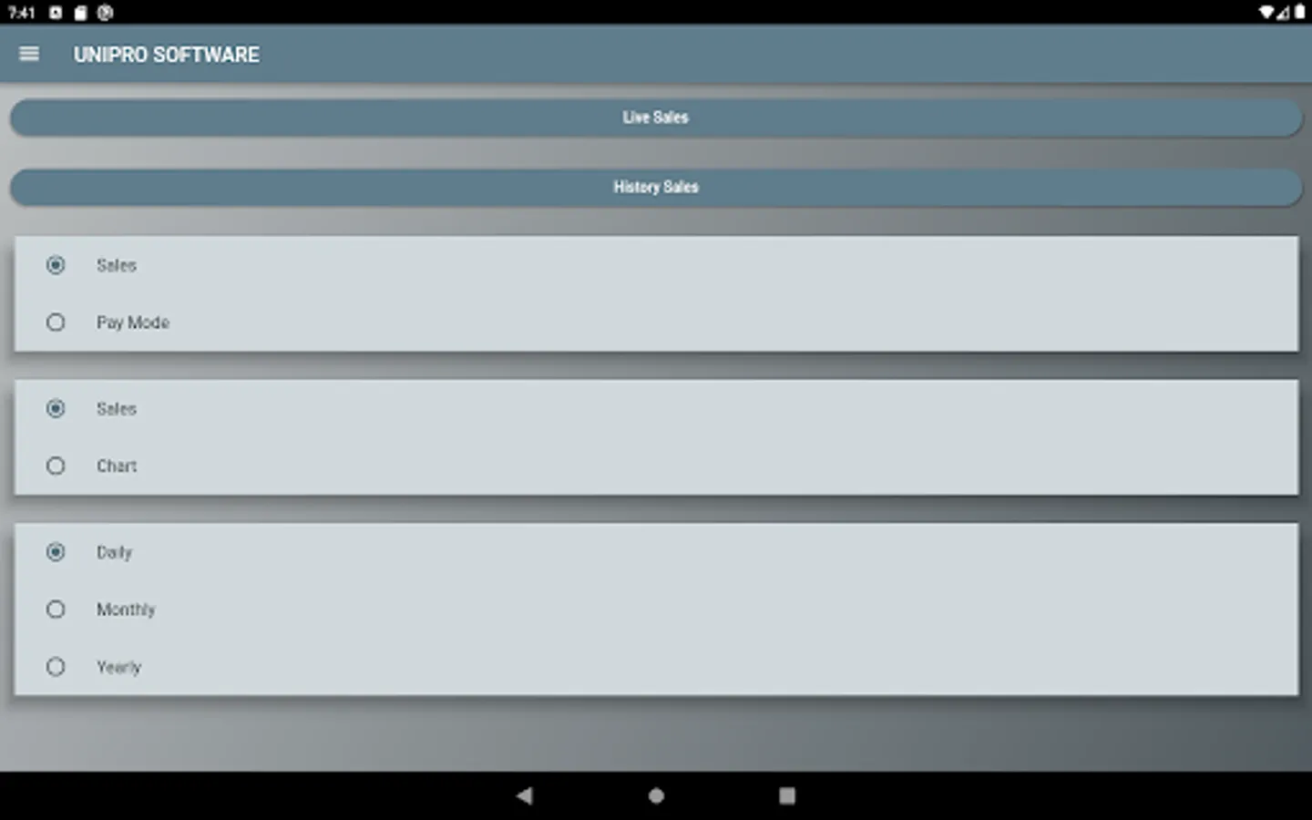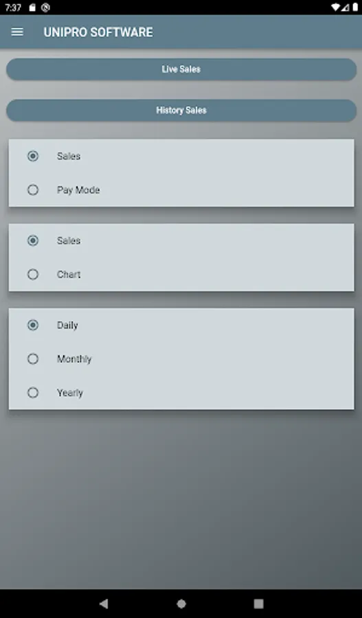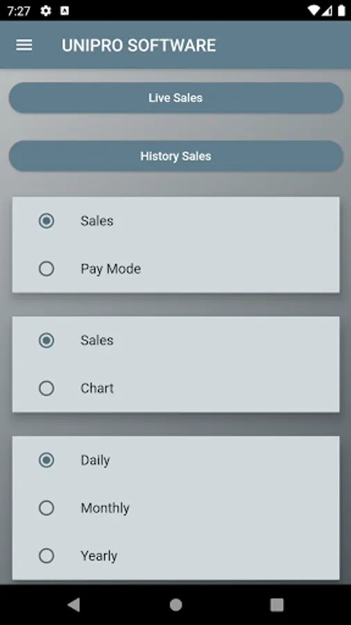 Can view history sales amount wise and paymode wise.