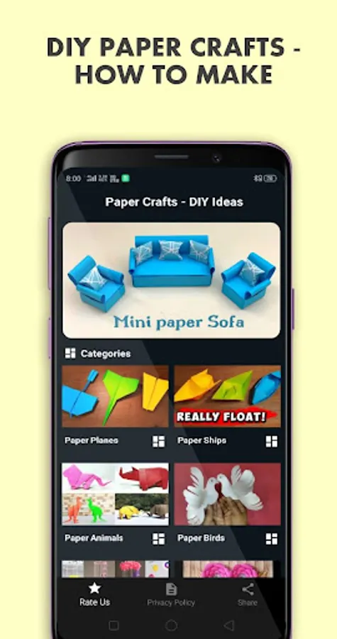 Paper craft is one of the most entertaining craft ideas. If you have any interest in paper crafts and origami, then here are some ideas guaranteed to inspire. Paper is such a versatile crafting material. Discover fun ways to craft with it, basic crafting skills, design origami and tips to get you started. DIY Paper Craft gives you an opportunity to learn Origami and Paper Crafts at home. This app is a quick and easy way to learn the art of paper folding.