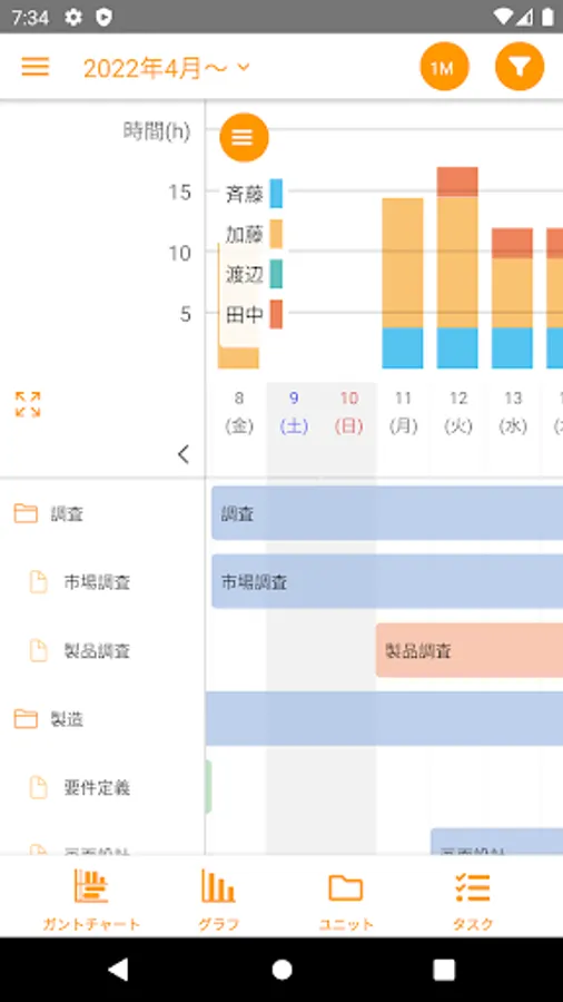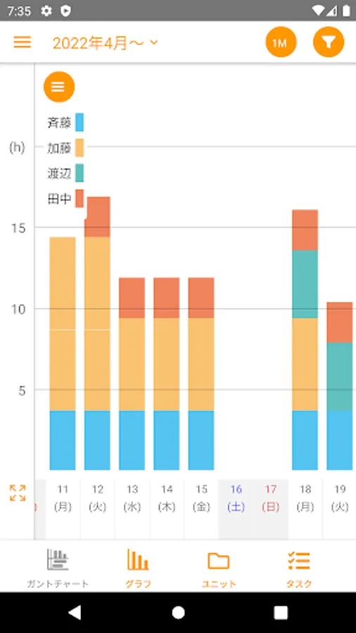 If you set the working hours for a task, the daily working hours of the person in charge will be displayed on the Gantt chart.