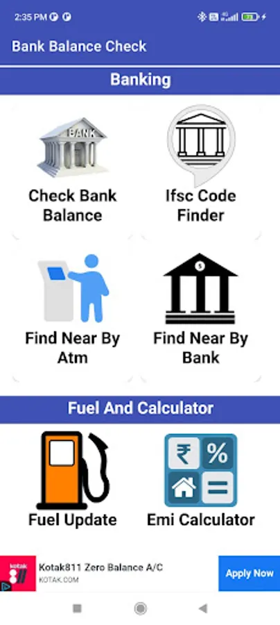Bank Balance Check App is Use For To Check Account Balance.Ifsc Code,Fuel Update.