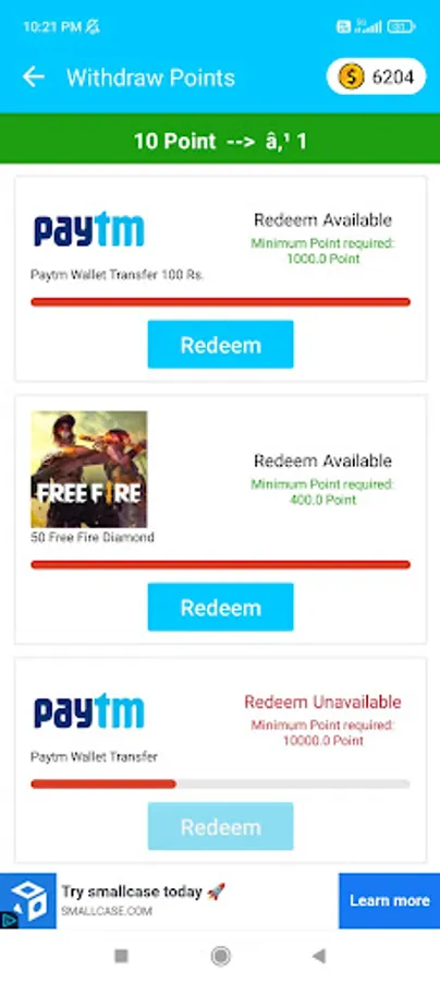 Useful To Earning Points And Convert it to Redeem Code Paytm Cash Free Diamonds etc...Earning App Is The Best Source To Earning Daily Free Diamonds Gift Cards Paytm Cash.