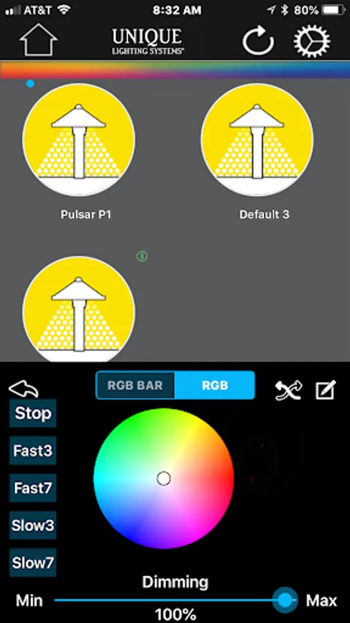 Bluetooth enabled LED lamp control. Name zones, name lamps, adjust color temperature, RGB color options, dimming and more.