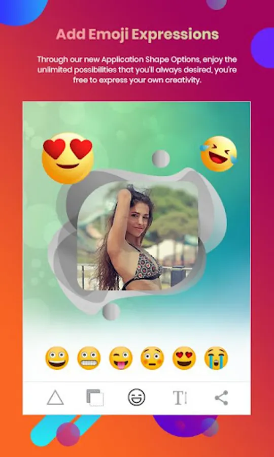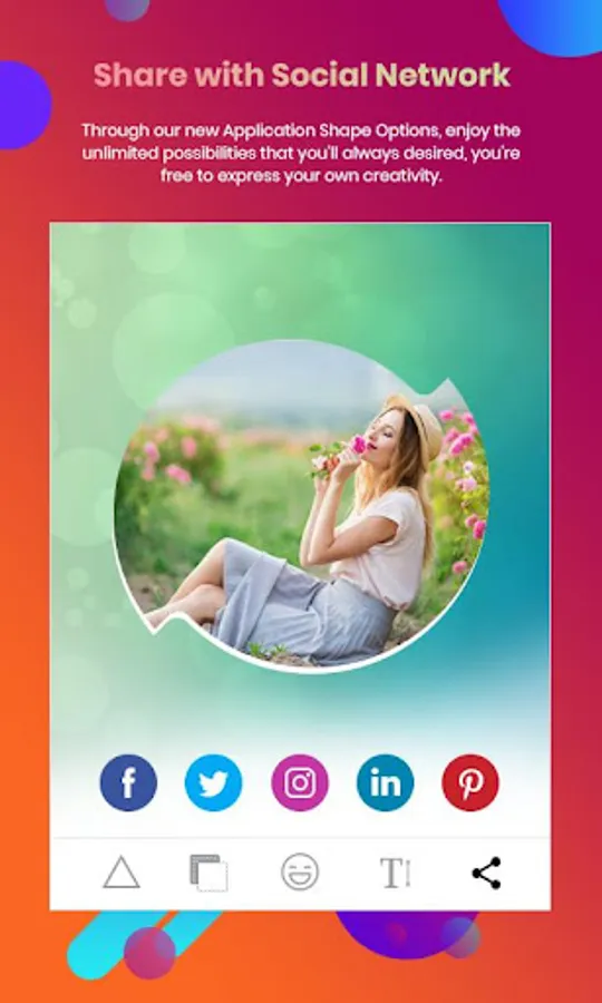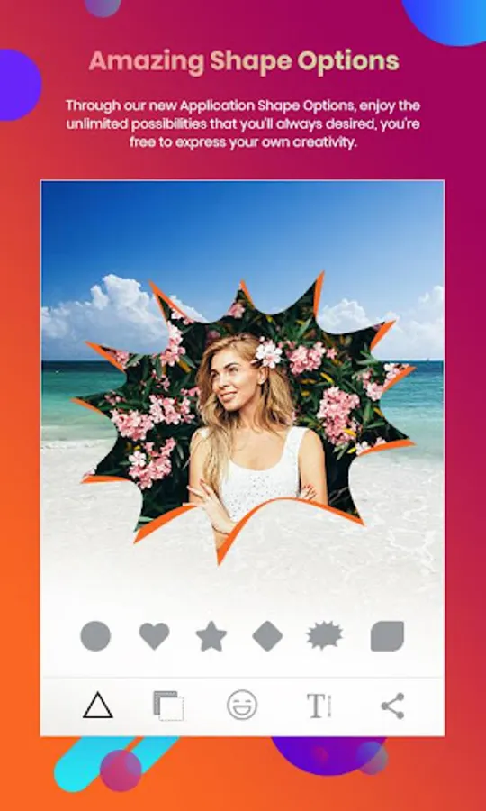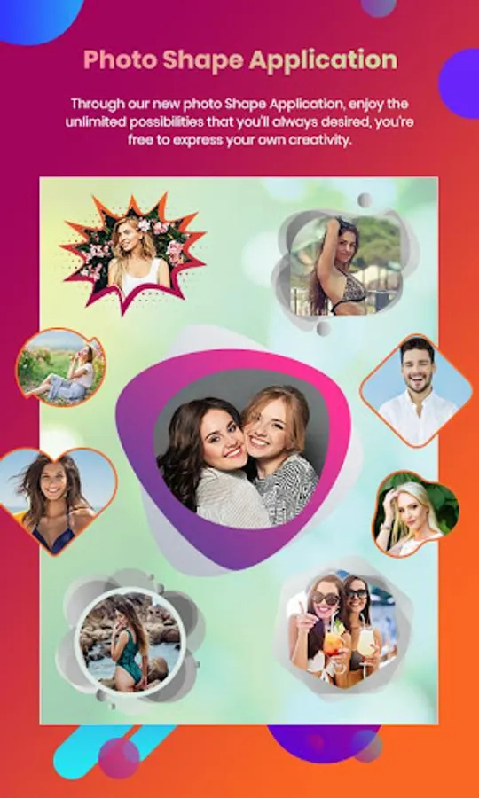 - You can select a photo from gallery or take photo with camera and create any of the good looking photo into frames and shapes.