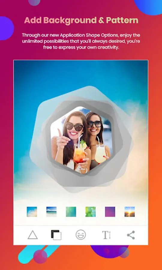 - You can select best looking design background pattern for each frame shapes.