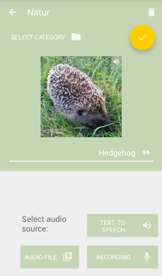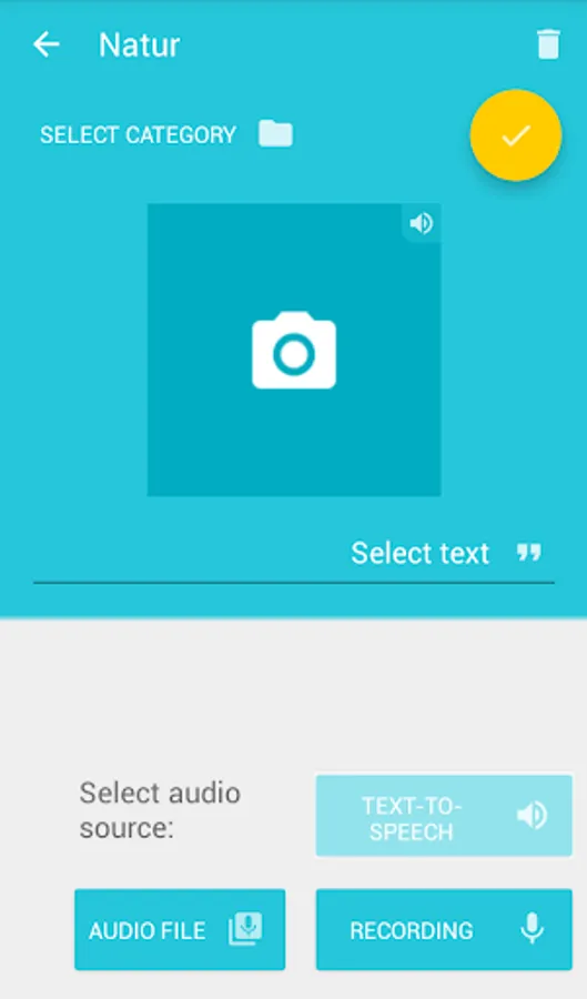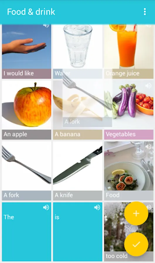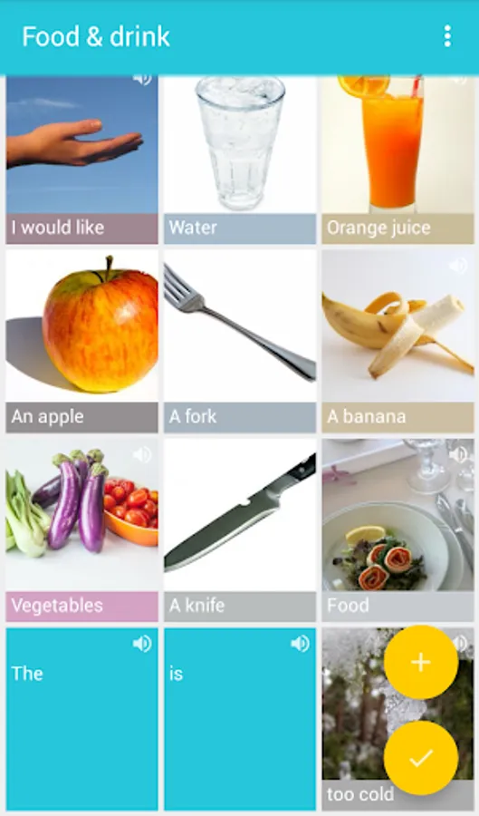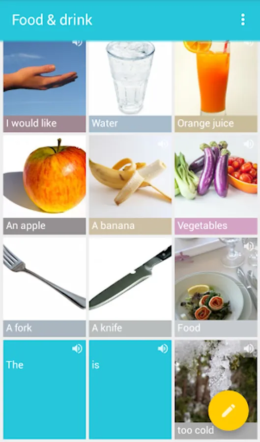 Take a picture that shows your desired action and record a text with the microphone. It will be played on tapping the image. You can also enter text to be read out loud automatically.