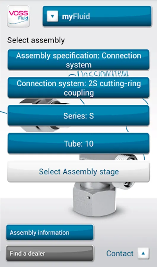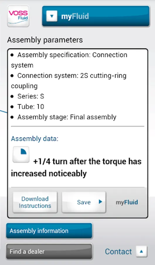 The VOSS Fluid app provides prospective buyers with the contact details of our global sales network and also offers a quick finder of the assembly data. The “myFluid” function enables you to directly save your own favourites.