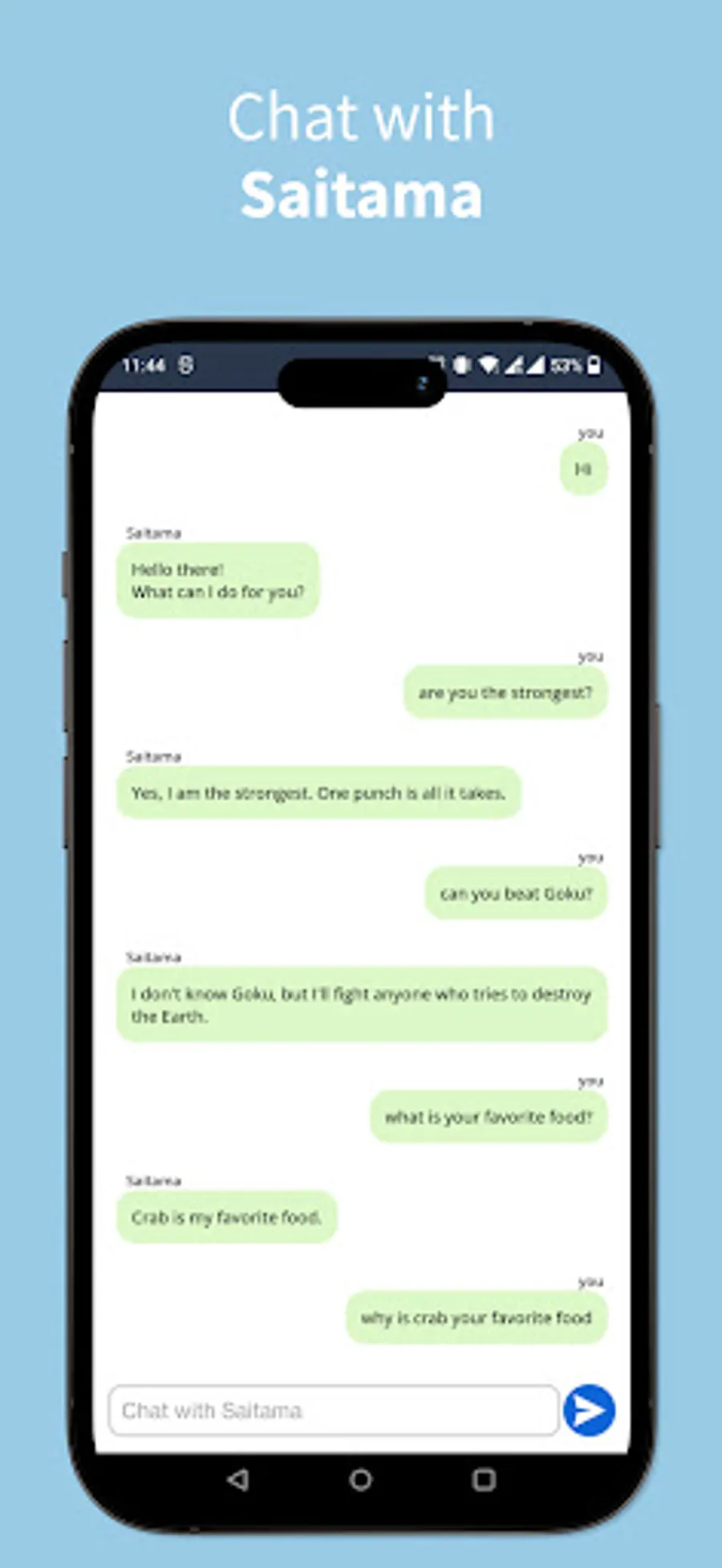 Anime Character AI Chat is more than just an app; it's an experience. It's a unique platform that allows you to interact with the Anime heroes you've always admired. So why wait? Dive into the world of Anime Character AI Chat and start chatting with a Ninja, a Pirate, a Soul Eater, or a Hero for Fun today!