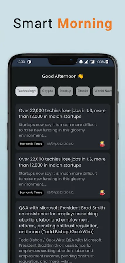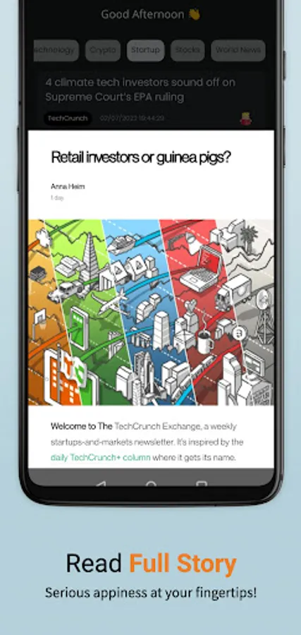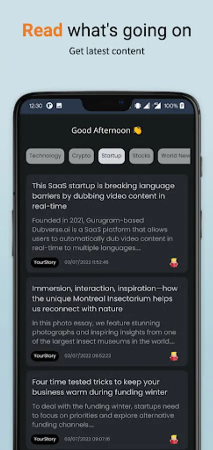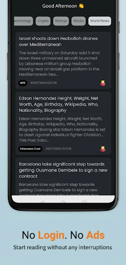 Currently you will get stories in Technology, Crypto, Finance, Startups, World News
