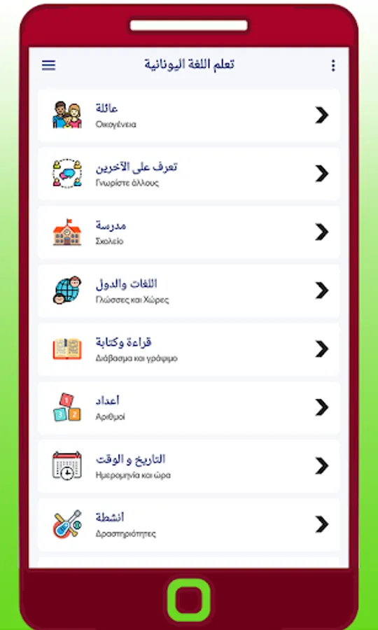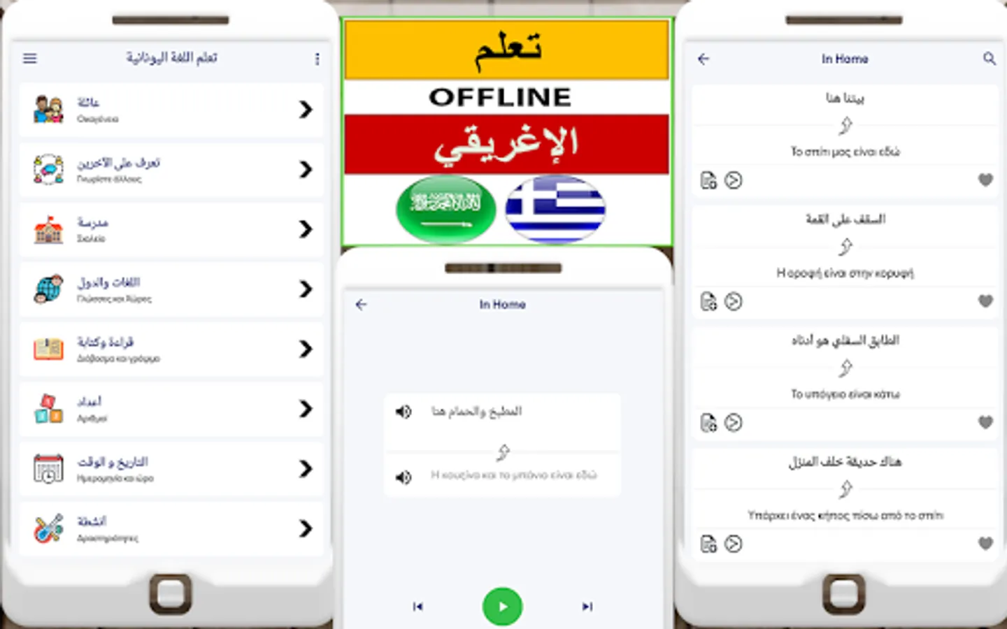 تعلم اليونانيةمجانا لجميع المستخدمين. يمكنك تعلم الجمل والعبارات المعقدة في وقت قصير تعلم اليونانية مجاناًالتطبيق مفيد لرجال الأعمال والمسافرين لتعلم أساسيات اللغة الأجنبية. يمكن للمستخدمين تعلم اللغة اليونانية وأسهل وأفضل طريقة لتعلم الأبجدية اليونانية والقواعد للمبتدئين. تعلم اللغة اليونانيةهو أيضا مفيد لتعلم الأفعال والمفردات. إنها تعمل بكفاءة على الإنترنت كما تعمل بشكل غير متصل.