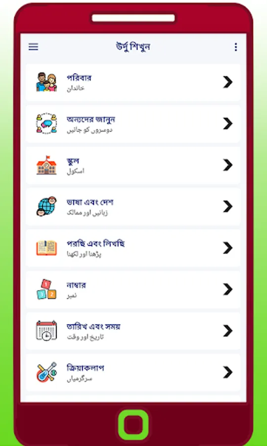 উর্দু ভাষা শিক্ষা বাংলাসব ব্যবহারকারীদের জন্য বিনামূল্যে. আপনি কোন সময় জটিল বাক্য এবং বাক্যাংশ শিখতে পারেন. উর্দু ভাষা শিক্ষা অ্যাপ্লিকেশন ব্যবসায়ী এবং ভ্রমণকারীরা বিদেশী ভাষার মূলসূত্র শিখতে জন্য সহায়ক. ব্যবহারকারী করুন জন্য উর্দু ভাষা এবং তার সবচেয়ে সহজ পদ্ধিতি হল এবং সবচেয়ে ভালো উপায় শিখতে পারেন. উর্দু ভাষা শিক্ষা বাংলাএছাড়াও ক্রিয়া এবং শব্দভান্ডার শেখার জন্য সহায়ক. এটা অনলাইন সেইসাথে অফলাইন মোডে দক্ষতার কাজ করে.