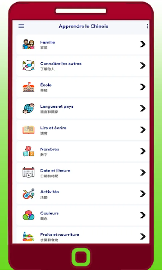 apprendre à parler chinois a très simples fonctionnalités et facile à utiliser. grammaire du chinois est la meilleure application pour apprendre la prononciation chinoise pour les débutants. Vous pouvez en apprendre davantage sur les noms de fruits et de légumes rapidement. Vous pouvez facilement apprendre des phrases communes prononciation et bases alphabets. grammaire du chinois français l'application consomme moins d'espace dans votre mobile.
