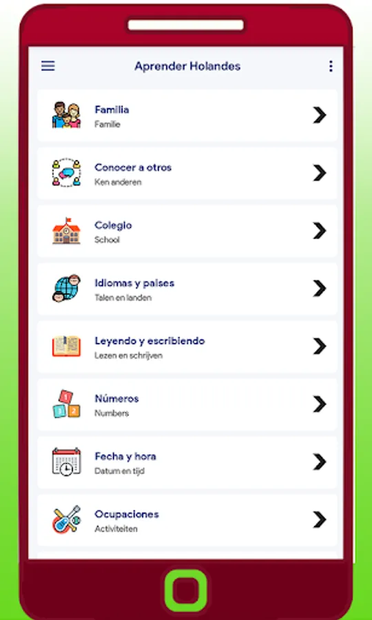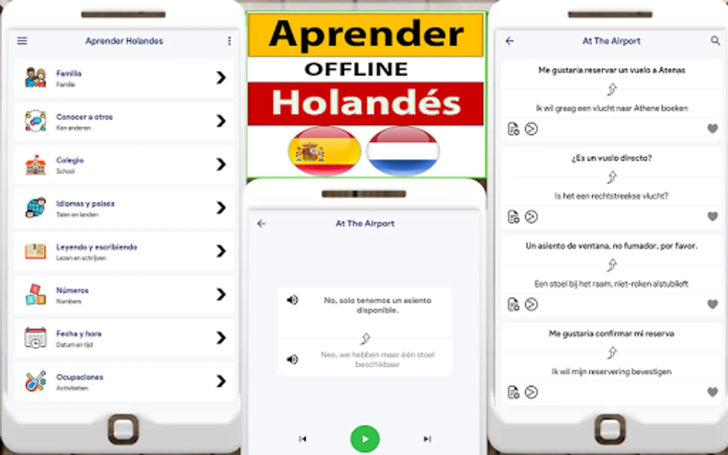 aprender holandés gratis Es gratuito para todos los usuarios. Puedes aprender oraciones y frases complejas en poco tiempo. aprender holandés La aplicación es útil para hombres de negocios y viajeros para aprender los conceptos básicos de la lengua extranjera. Los usuarios pueden aprender el idioma holandés y su forma más fácil y mejor de aprender alfabetos holandeses y gramática para principiantes. gramática holandesa También es útil para el aprendizaje de verbos y vocabulario. Funciona con soltura en línea, así como el modo fuera de línea.