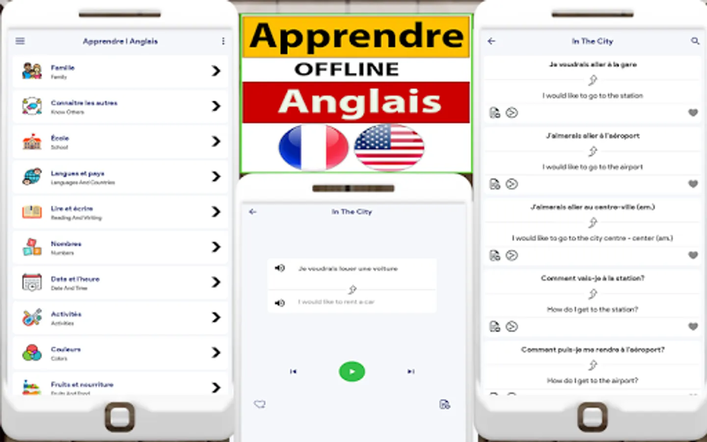 English French app is Free for all users. You can learn complex sentences and phrases in no time. French alphabets app is helpful for businessmen and travelers to learn the basics of the foreign language. Users can learn English language and its easiest and best way to learn English alphabets and grammar for beginners. French verbs app is also helpful for learning verbs and Vocabulary. It works proficiently in online as well as offline mode.